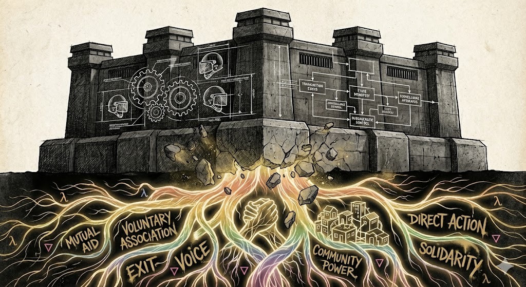 Radical liberalism suggests we can lower the cost of survival by creating "endogenous rules" and institutions that bypass the state entirely. This is the heart of prefigurative politics. We see this in the Audre Lorde Project, which organizes "safe neighborhood campaigns" to resolve conflicts without calling the police. We see it in trans communities that use mutual aid to route around state-controlled medical monopolies to access gender-affirming care.
