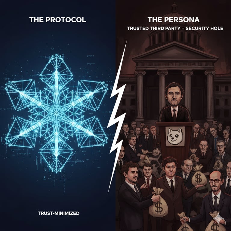 The Article Confuses the Protocol with the "Industry." The author conflates the decentralized, automated protocol (like Bitcoin) with the centralized, human-run industry (like FTX, Binance, and the $TRUMP memecoin). The protocol is a set of rules without a ruler. The industry is a collection of traditional, centralized companies that act as trusted third parties, complete with CEOs, marketing departments, and political lobbyists. The article’s villains are all centralized actors who re-introduced trust into a trustless system. Blaming the protocol for the failures of the industry is like blaming the invention of the TCP/IP internet protocol for phishing scams and email spam.