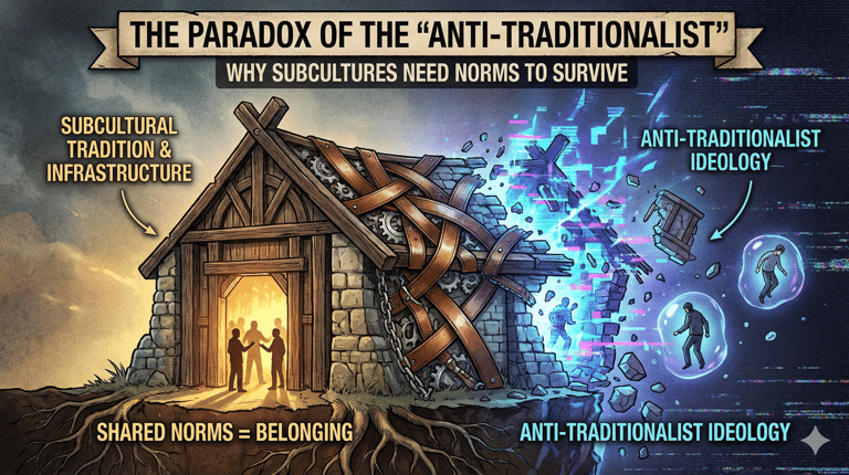 In subcultures—especially subversive ones like the leather community—traditions aren't just arbitrary rules meant to gatekeep. They are the transmission mechanism of culture. They are survival codes, rituals of recognition, and shared languages passed down by those who navigated tougher times.